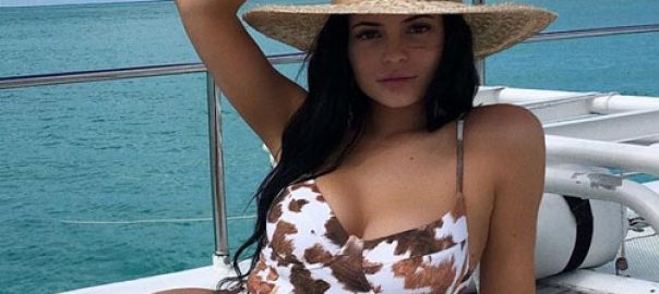 Kylie Jenner Scores Serious Style Points in Cowhide-Print Belted Swimsuit