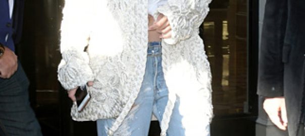 Gigi Hadid Artfully Pairs Pearl-Embellished Jeans And White Sneakers