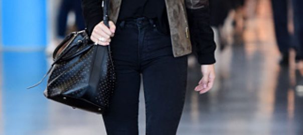 Rosie Huntington-Whiteley Shows Off Her Long Legs In Flared Jeans Teamed With Patchwork Suede Jacket ...