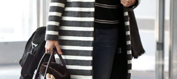 Eva Mendes Is All About The Stripes Arriving at JFK Airport