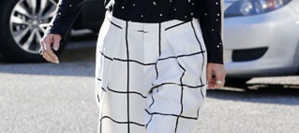 Gwen Stefani Is On Trend Wearing Chloé Checked Crepe Pants