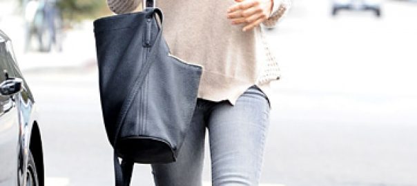 Jessica Alba Stays Sleek In Washed Grey Skinny Jeans