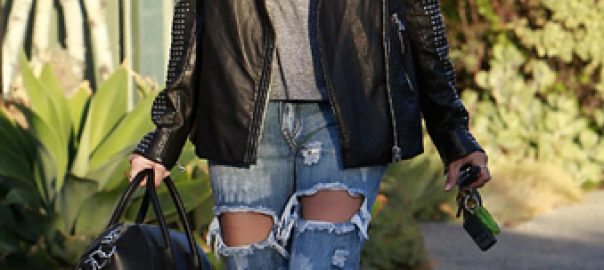 Ashley Tisdale Rocks A Leather Studded Moto Jacket