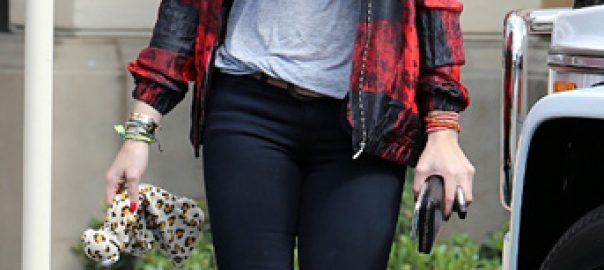Hilary Duff Sports A Plaid Embroidered Bomber Jacket