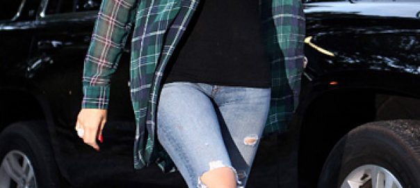 Khloe Kardashian Steps Out In Perfectly Shredded Jeans and Sheer Plaid Top