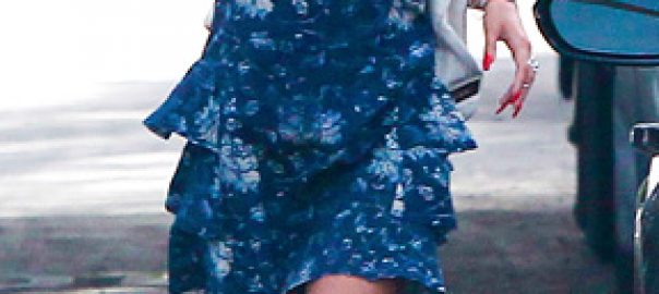 Vanessa Hudgens Stops By Aaron Brothers in a Pretty Blue Floral Print Sundress