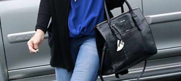 Jessica Alba shark bag and blue fedora stopping by Prix Body Piercing for a tattoo in West Hollywood on January 26, 2014. ...