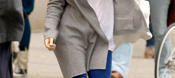 Miranda Kerr wore the Proenza Schouler colorblockt turtleneck sweater Heathrow Airport November 11 ...