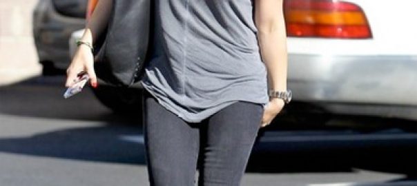 Hilary Duff wearing J Brand Stepped Hem Skinny Jean in Graphite Isabel Marant Tacy boots