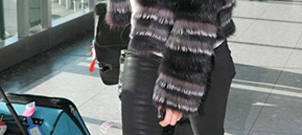 Kate Beckinsale In a Black Fur Jacket Heathrow Airport in London November 4 2013