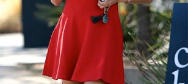 Alessandra Ambrosio Wore A Red Skater Mini Dress Taking Anja to ballet class October 22 2013