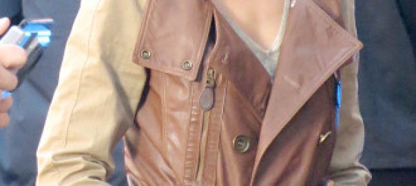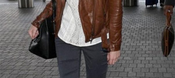 Emma Watson’s Brown Lace-Up Leather Jacket,Jeans, Boots, Black Bag at LAX