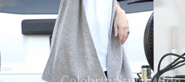 Jessica Biel’s Open Cashmere Cardigan with Hood, Lace-Up Sneakers in Encino