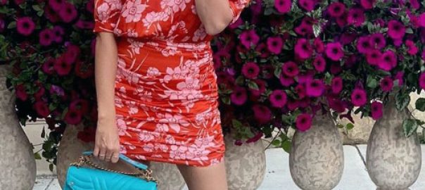 Ashley Tisdale Shows Off a Tropical Red Floral Dress Ashley Tisdale, dress, Floral Dress, Louis Vuitton ...