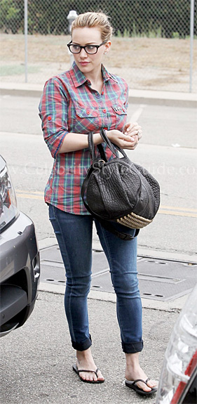Jessica Alba wearing Tolani Gold and Black Silk Scarf