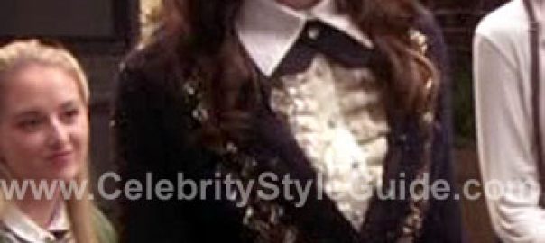 Gossip Girl wearing L.A.M.B. Sequin Argyle Cardigan in navy
