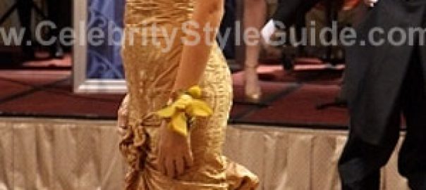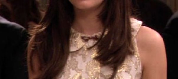 Gossip Girl wearing Pamela Dennis Brocade column gown w/ Swarovski topaz crystals