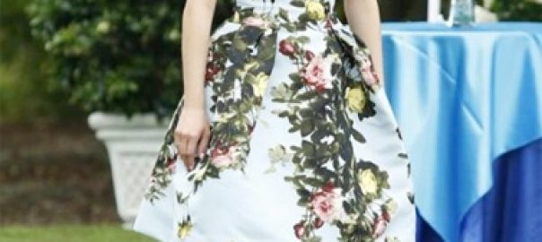 Revenge Style: Season 4 Episode 1 Emily’s Blue Floral & Red Flare Dress