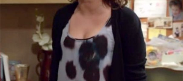 Trophy Wife: Season 1 Episode 1 Kate’s Striped Shirt Red Leather Shorts