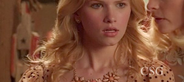 Hart of Dixie Sparks Fly Fashion: Magnolia polka dot dress and flower necklace