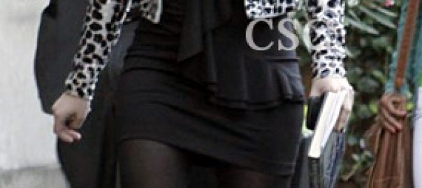 Michelle Trachtenberg’s One-Sleeve Black Ruffle Dress On The Set Of Gossip Girl In NYC