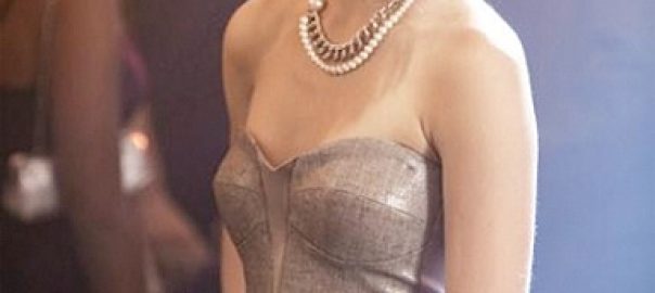Pretty Little Liars wearing bebe Strapless Shimmer Pencil Dress